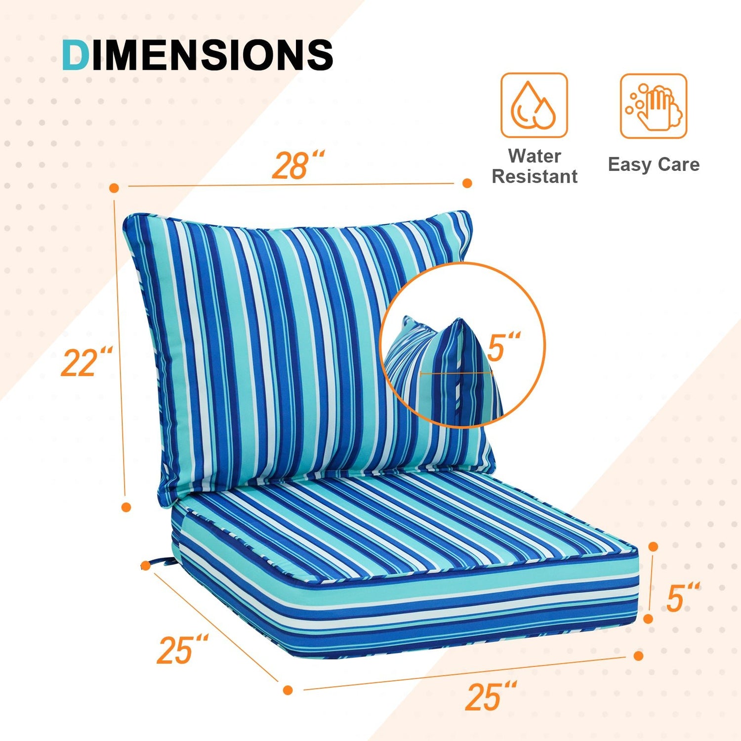 Outdoor Deep Seat Patio Seat Cushion Set, 25x25x5 inch, 2-Piece Back Chair Cushion - Blue is backordered and will ship as soon as it is back in stock.