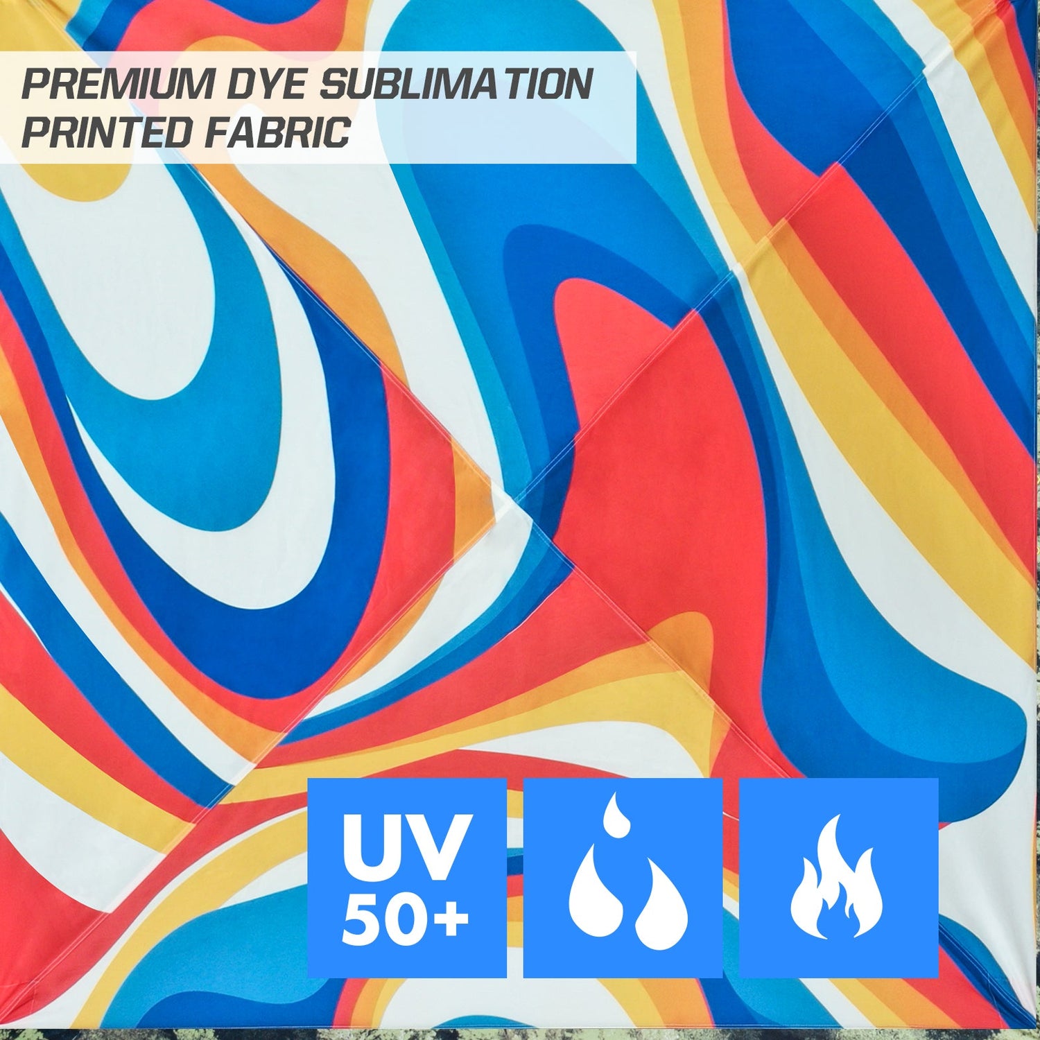UNIQUE PRINTED FABRIC: Add a groovy design and fun colors to your next outdoor outing. Stand out in the crowd with this unique full coverage digital printing EAGLE PEAK 10x10 instant canopy. Our Shade GraphiX tops use dye sublimation printing which results in a vibrant and color rich canopy top on the entire peak and valence.