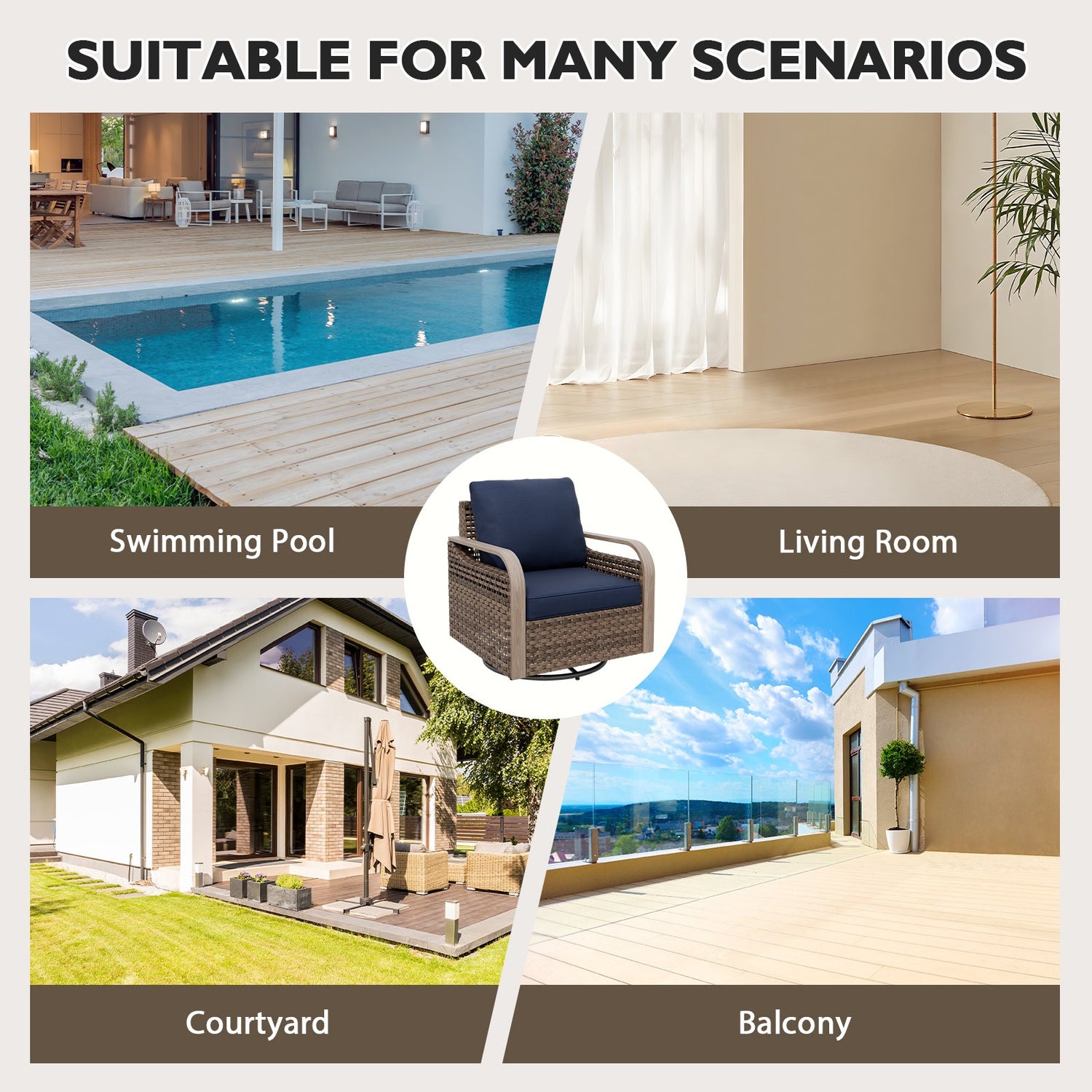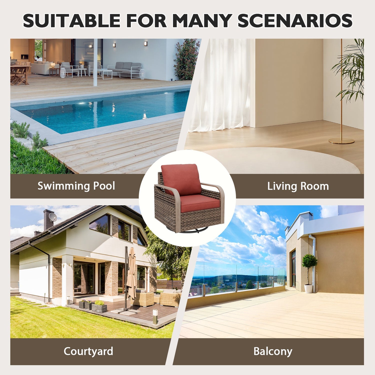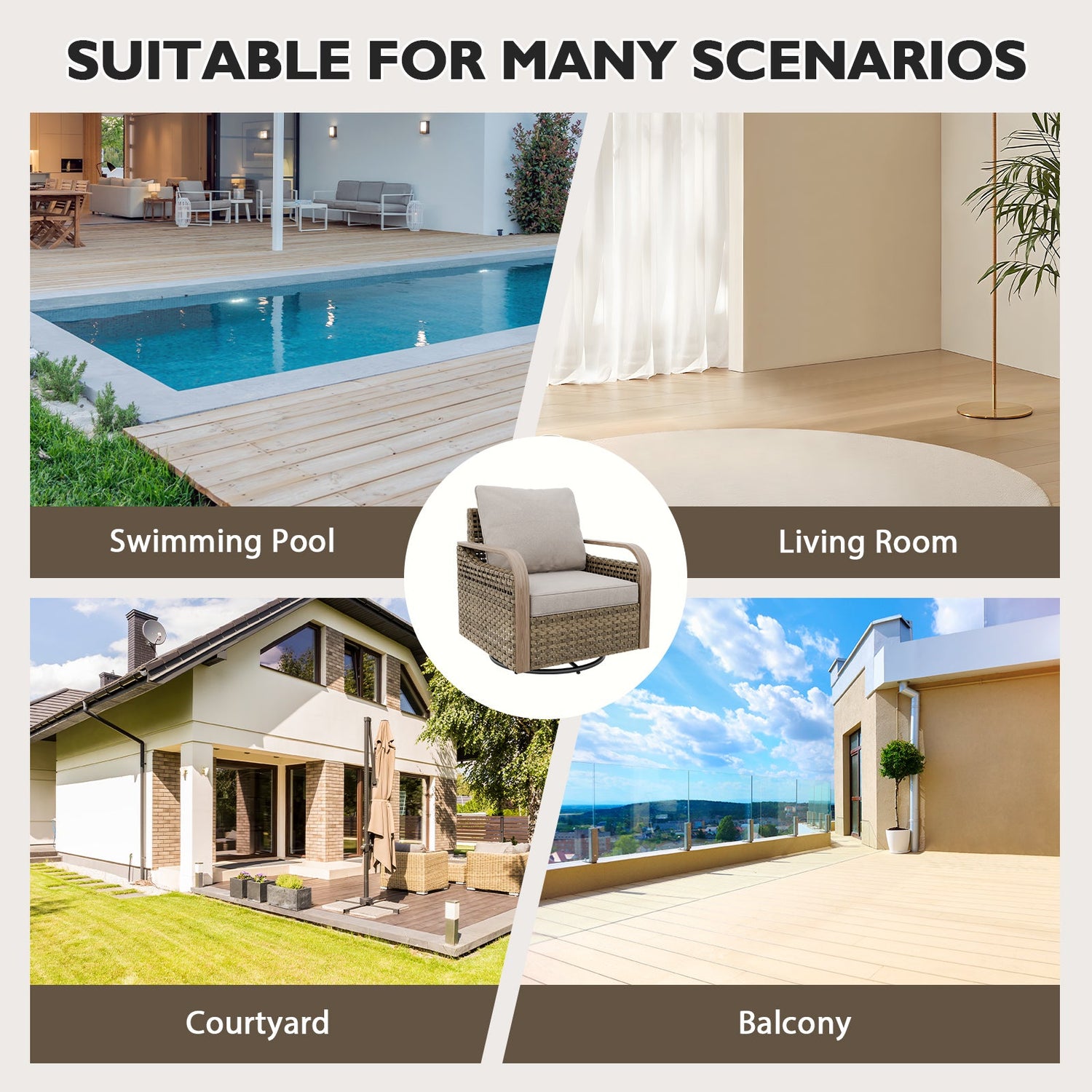 GATHER, RELAX, ENJOY: This wicker swivel rocking chairs have generously widened seats and plush 5-inch back cushions for ultimate comfort. Designed for outdoor living, it's made with UV protection and weather resistance materials, making this furniture the ideal choice for stylish, worry-free lounging.