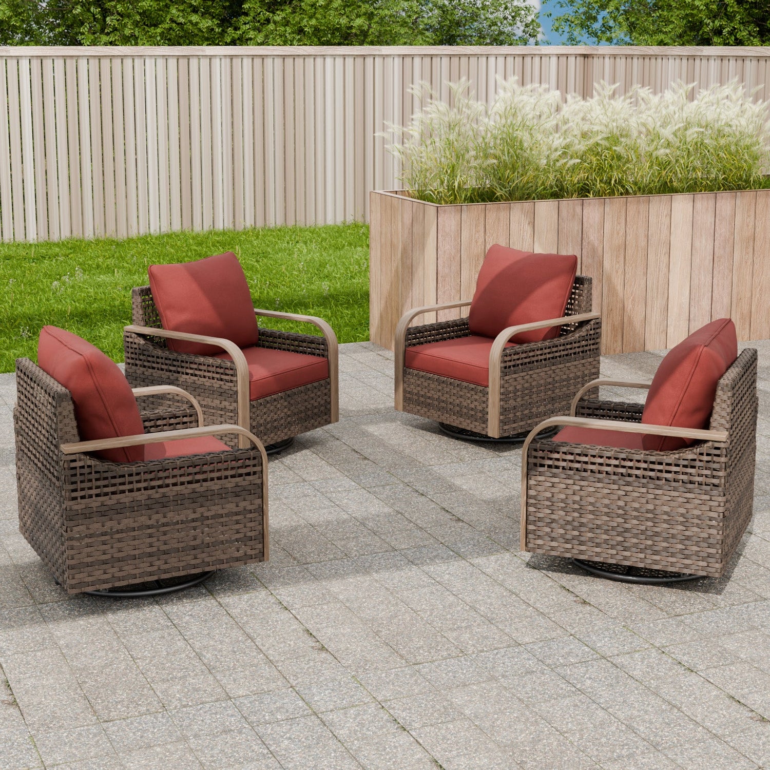 SMOOTH SWIVEL & ROCKING DESIGN: This 4 piece rattan patio swivel chair set is designed with a gentle glider rocking motion that creates a soothing experience. They also effortlessly rotate 360°, allowing for easy swiveling while seated.