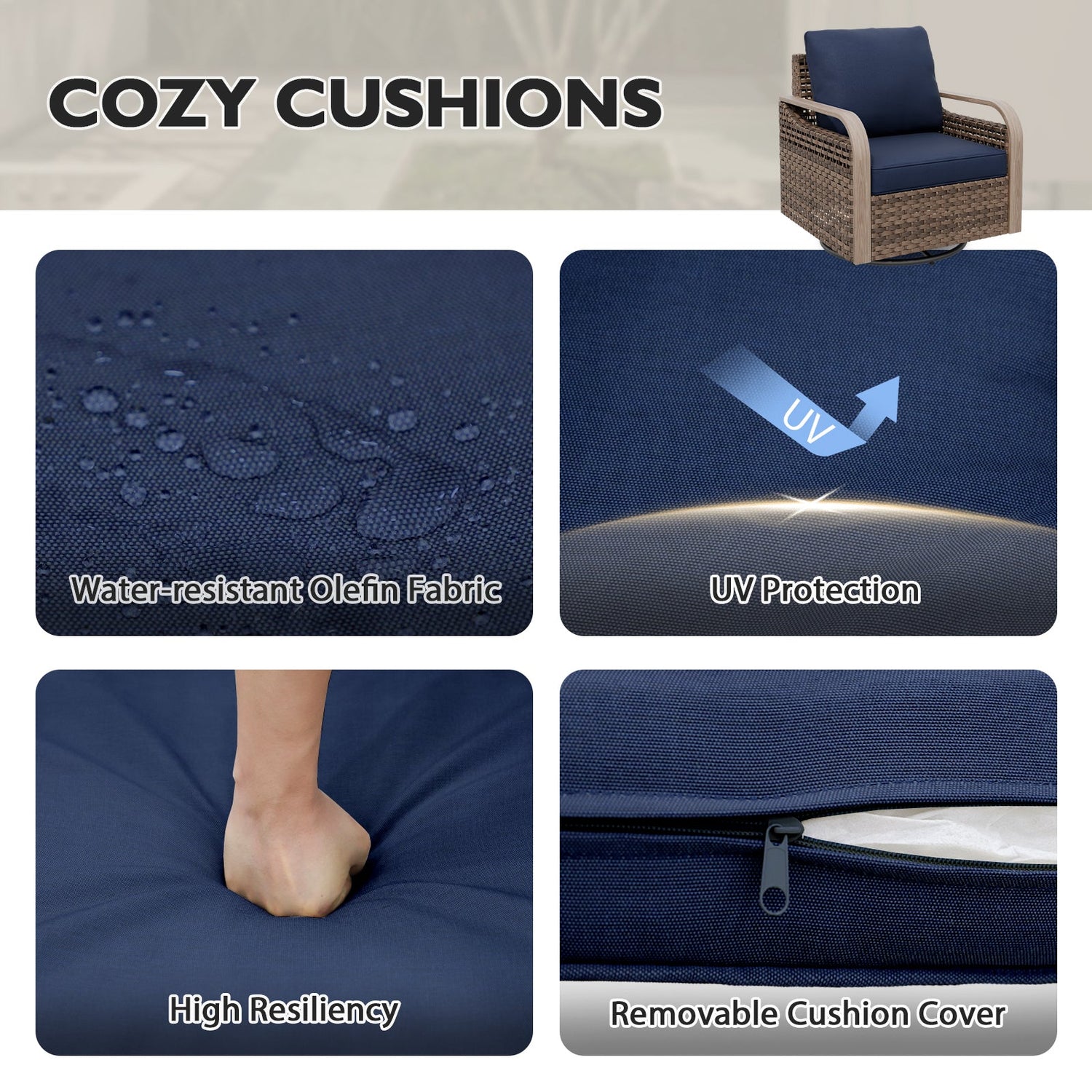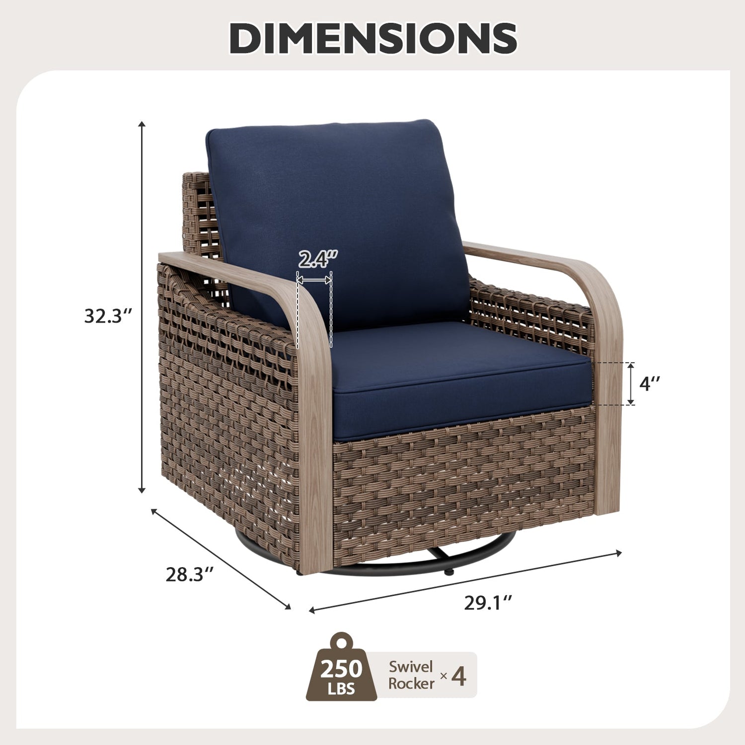 GATHER, RELAX, ENJOY: This wicker swivel rocking chairs have generously widened seats and plush 5-inch back cushions for ultimate comfort. Designed for outdoor living, it's made with UV protection and weather resistance materials, making this furniture the ideal choice for stylish, worry-free lounging.