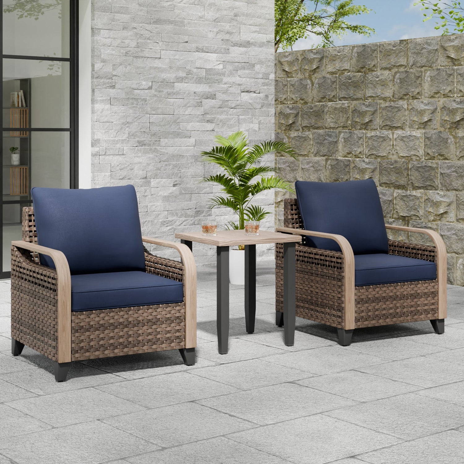 Modern Wicker Outdoor Table and Chairs Set of 3