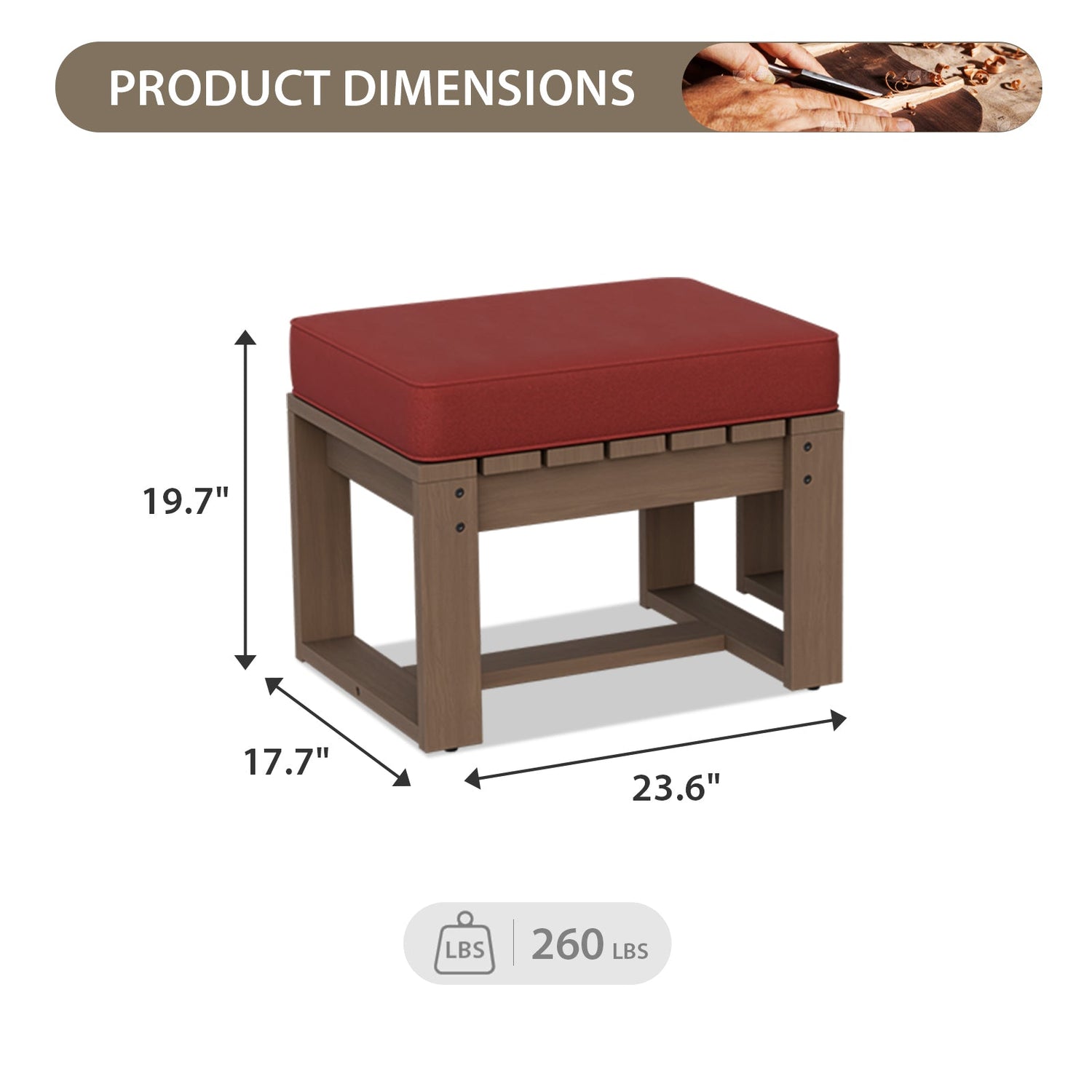 PERFECTLY SIZED: Thoughtfully designed for both function and style, the ottomans each measure 23.6" W x 17.7" D x 14.8" H. This charming cedar patio ottoman set is sure to enhance your outdoor dining decor. Pair this footrest with patio chairs or a sofa (sold separately).