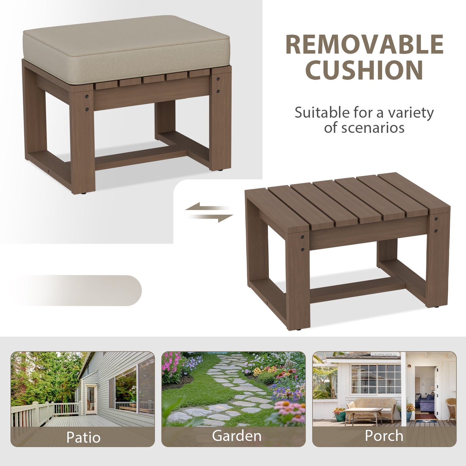 PREMIUM NATURAL CEDAR WOOD: Crafted with natural cedar wood, these ottomans are the perfect blend of strength and style, adding a rustic charm to any outdoor setting. Cedar’s durability makes it resistant to rot, decay, and insect damage, ensuring long-lasting resilience and beauty.