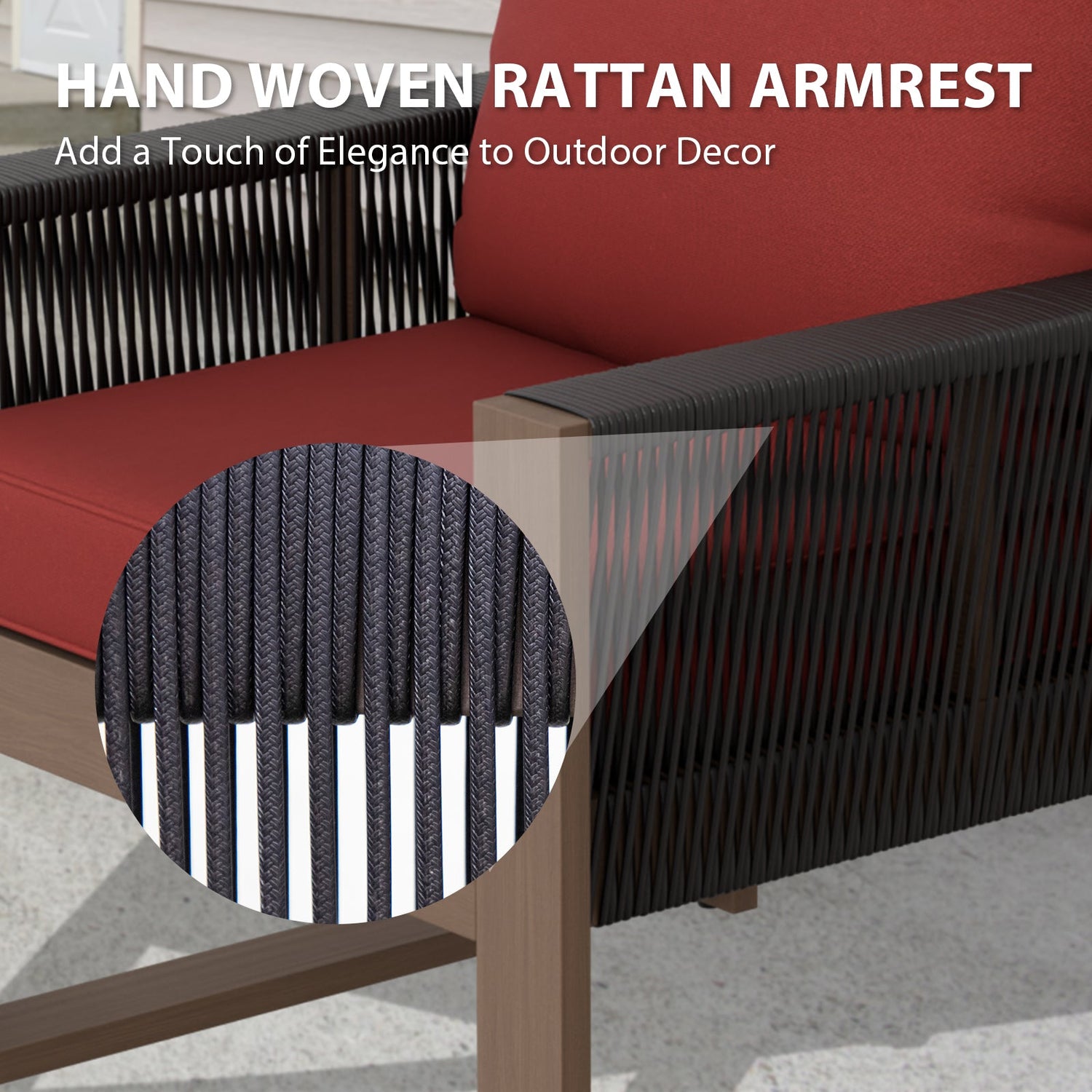 ELEGANT DESIGN: The real wood has a rich grain, while the smooth polished finish shows the natural hues. Hand woven rattan accents on the armrest, add a touch of elegance that complements classic, rustic and contemporary decor. Cedar furniture is ideal for patios, gardens, porches, and more.