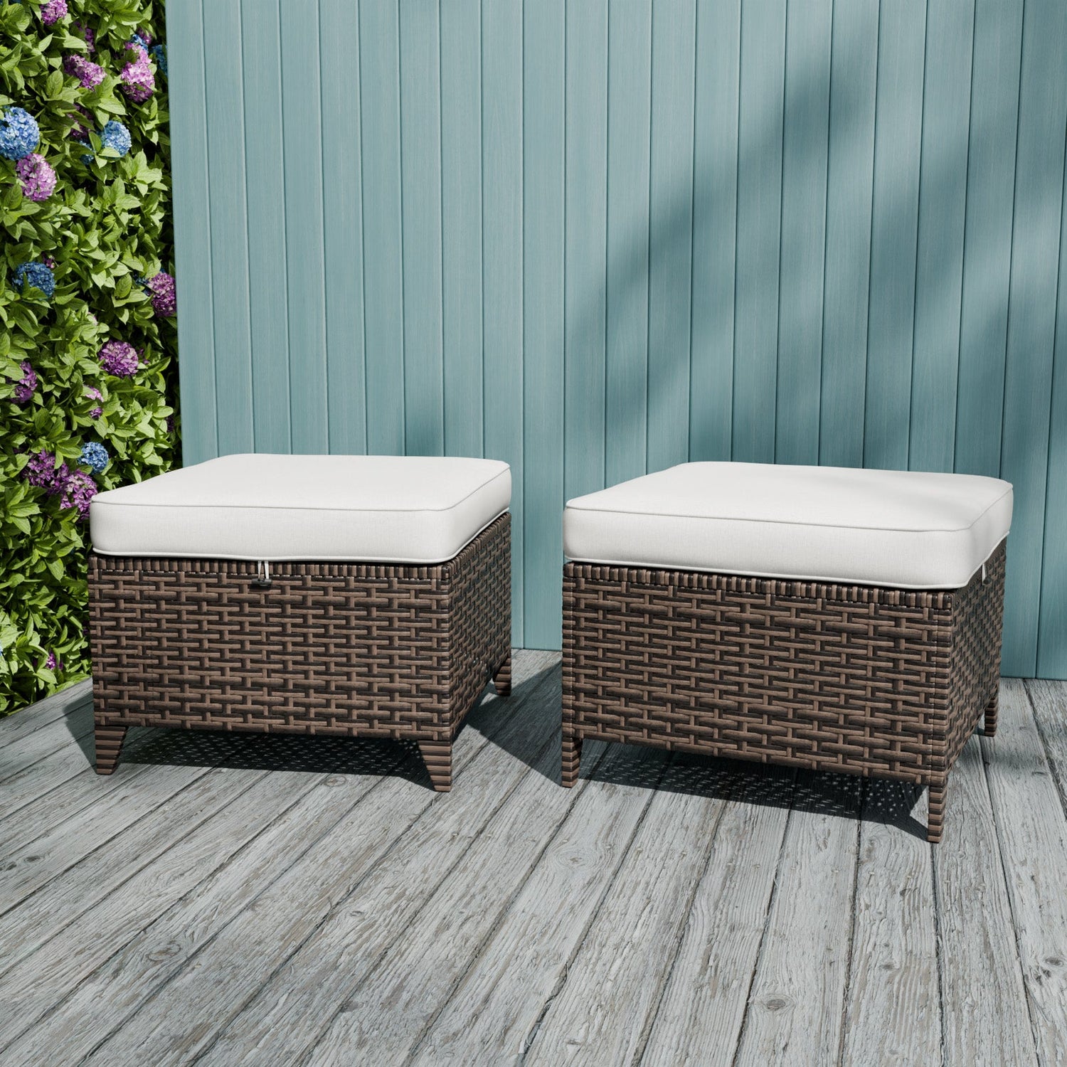 CLASSIC DESIGN: These stylish PE rattan ottomans aren't just footstools they're your ticket to ultimate relaxation; whether you're lounging by the pool or enjoying a lazy afternoon on the deck, these ottomans complete any patio furniture set