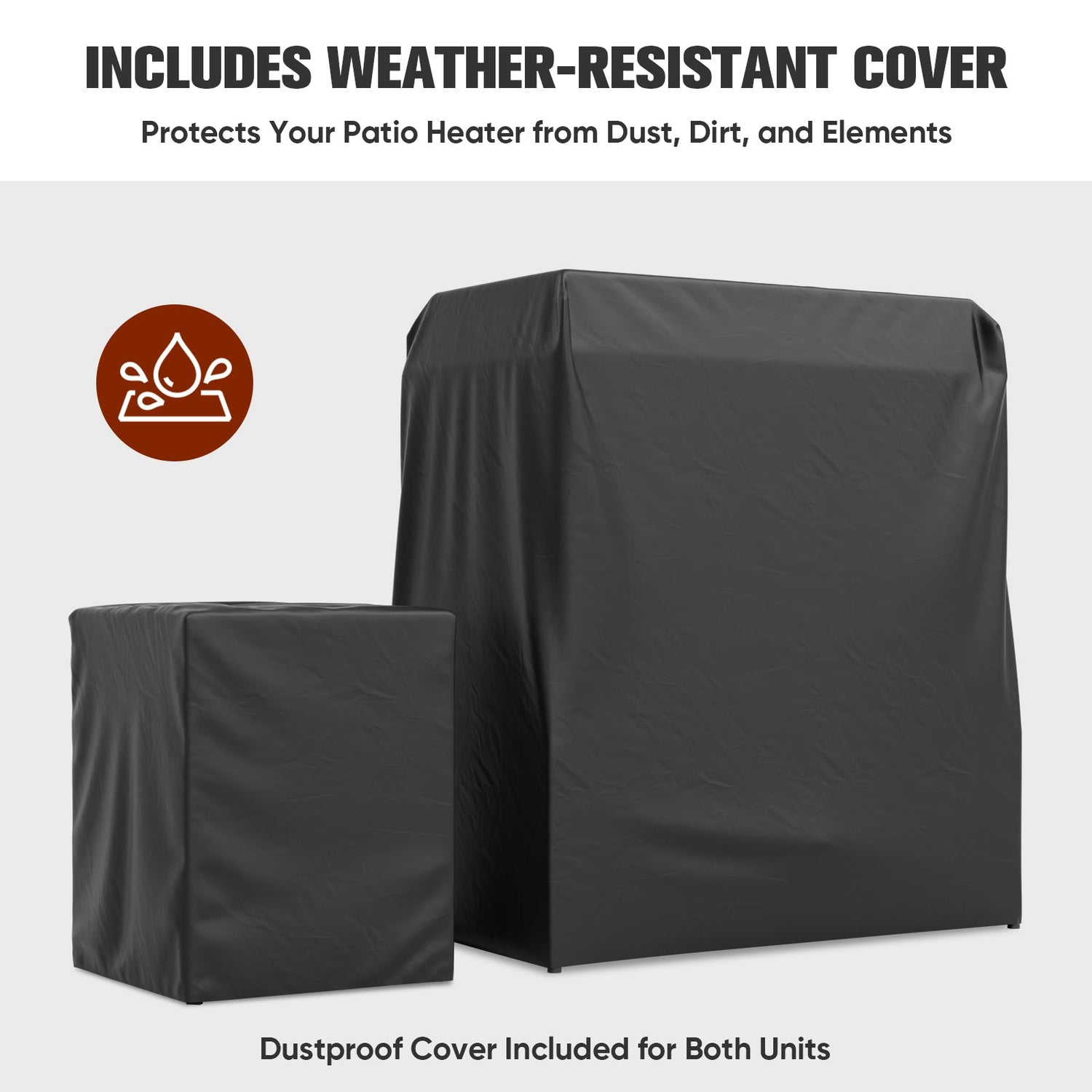DUSTPROOF COVER: Protect your patio heater from dust, dirt, and the elements with the included weather resistant dustproof cover, ensuring long-lasting performance. Assembly is easier with two or more people