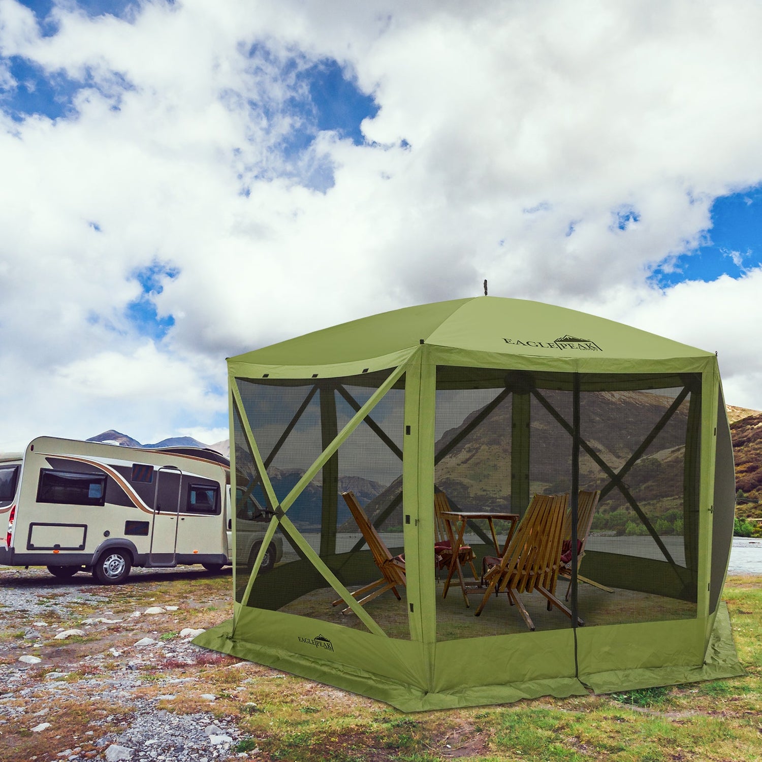 SPACIOUS & ROOMY: This pop-up screen house measures12' L x 12' W x 8' H and provides ample room to accommodate 8-10 people with a table and chairs. The six tight no-see-um mesh walls allows you to enjoy time outdoors with family and friends.