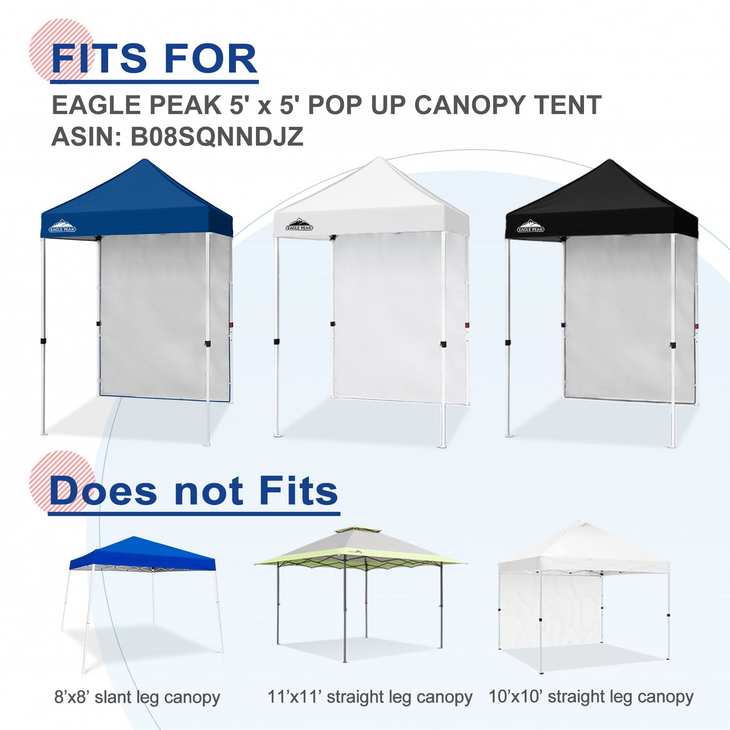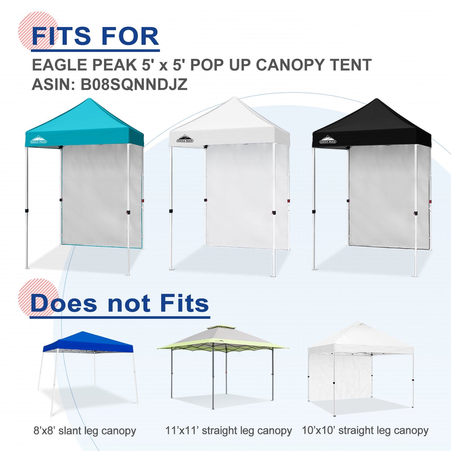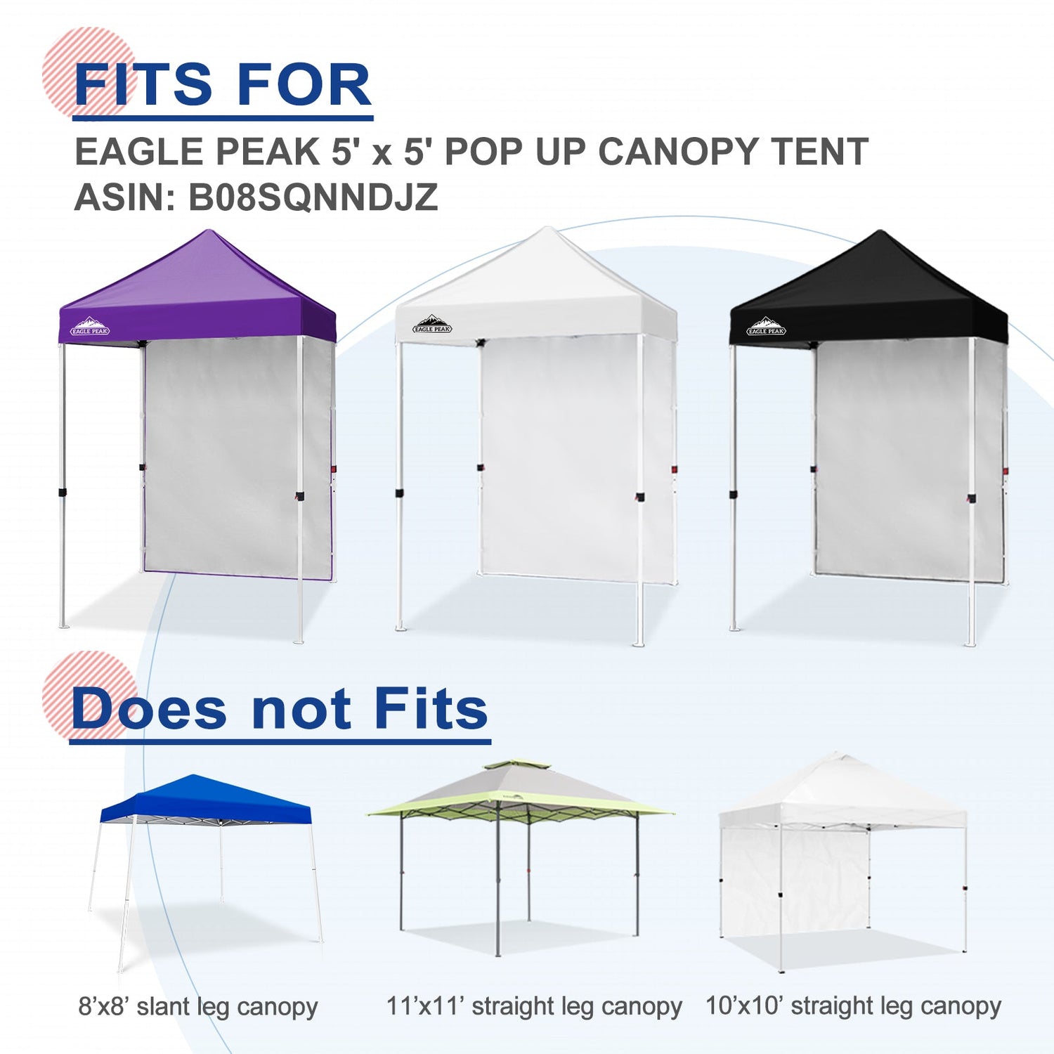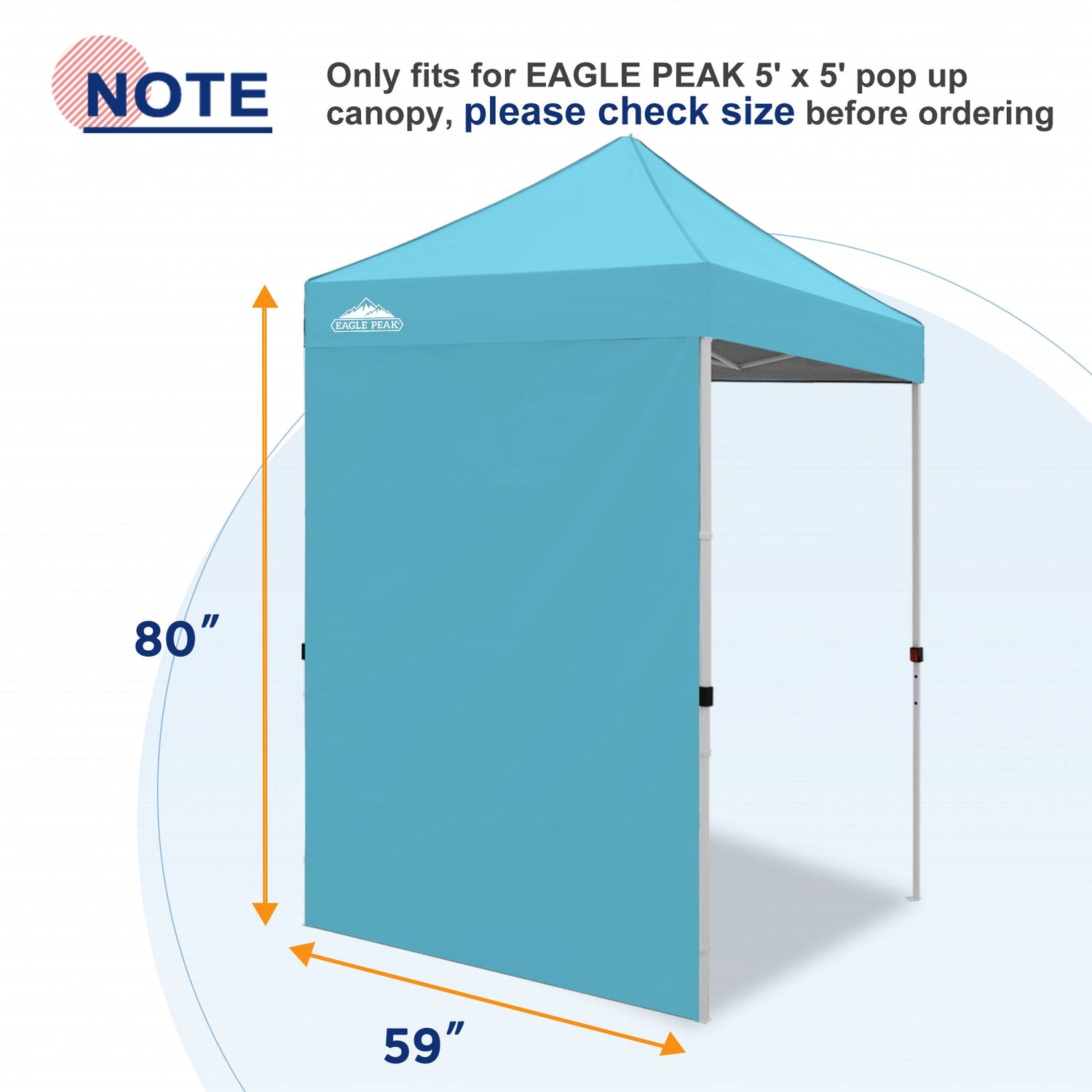 Fit For: This Eagle Peak sunwall measures 59'' L x 80'' H, fits for the Eagle Peak straight leg canopy 5x5. One sidewall is for one side of the 10x10 instant pop up canopy.