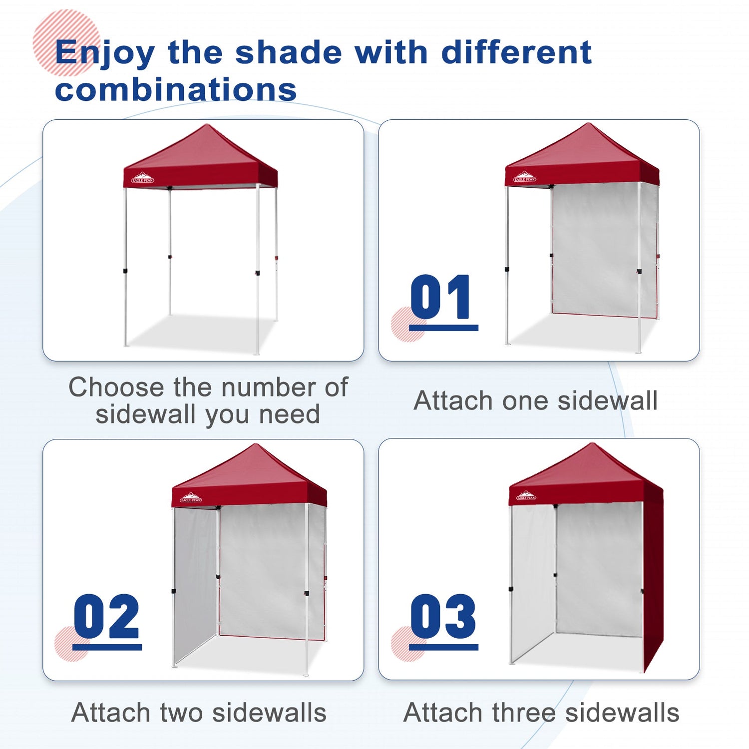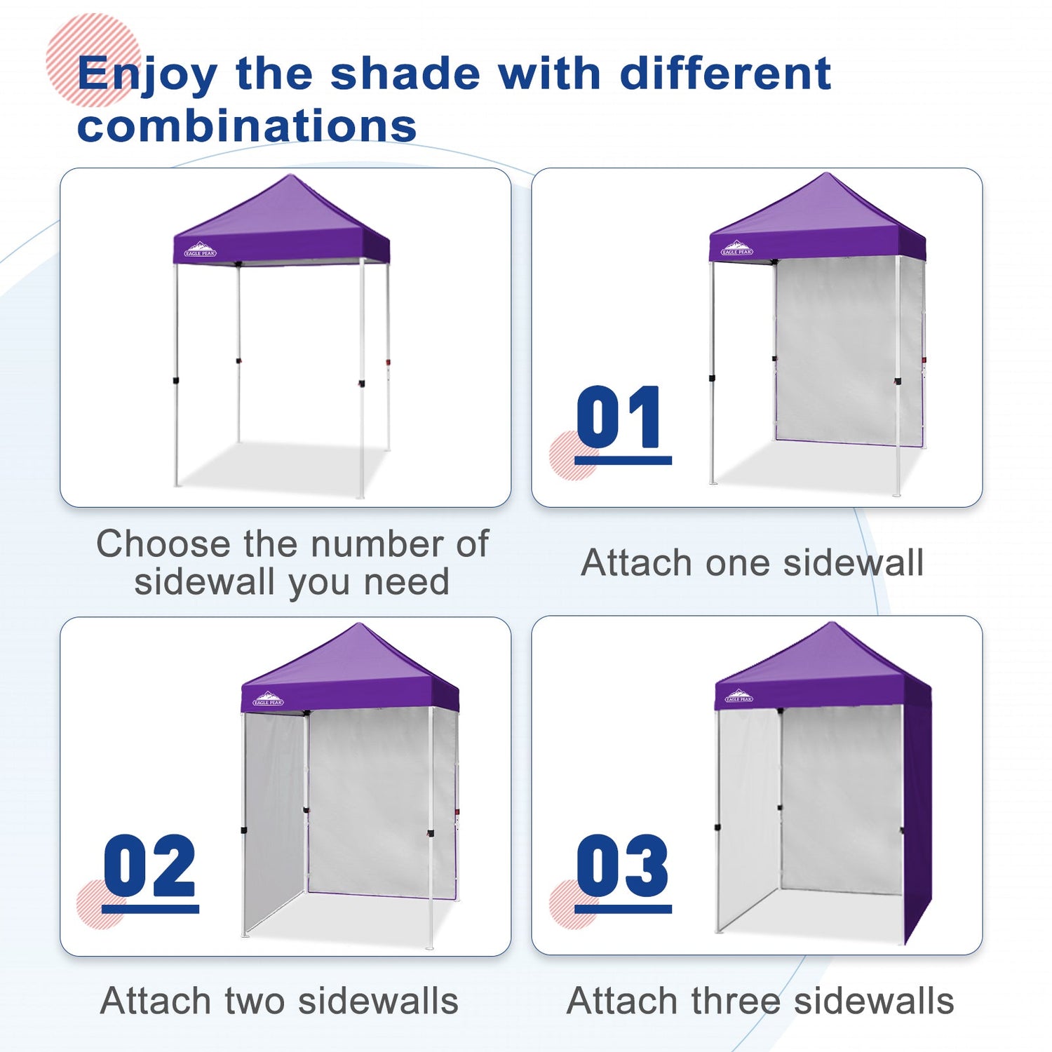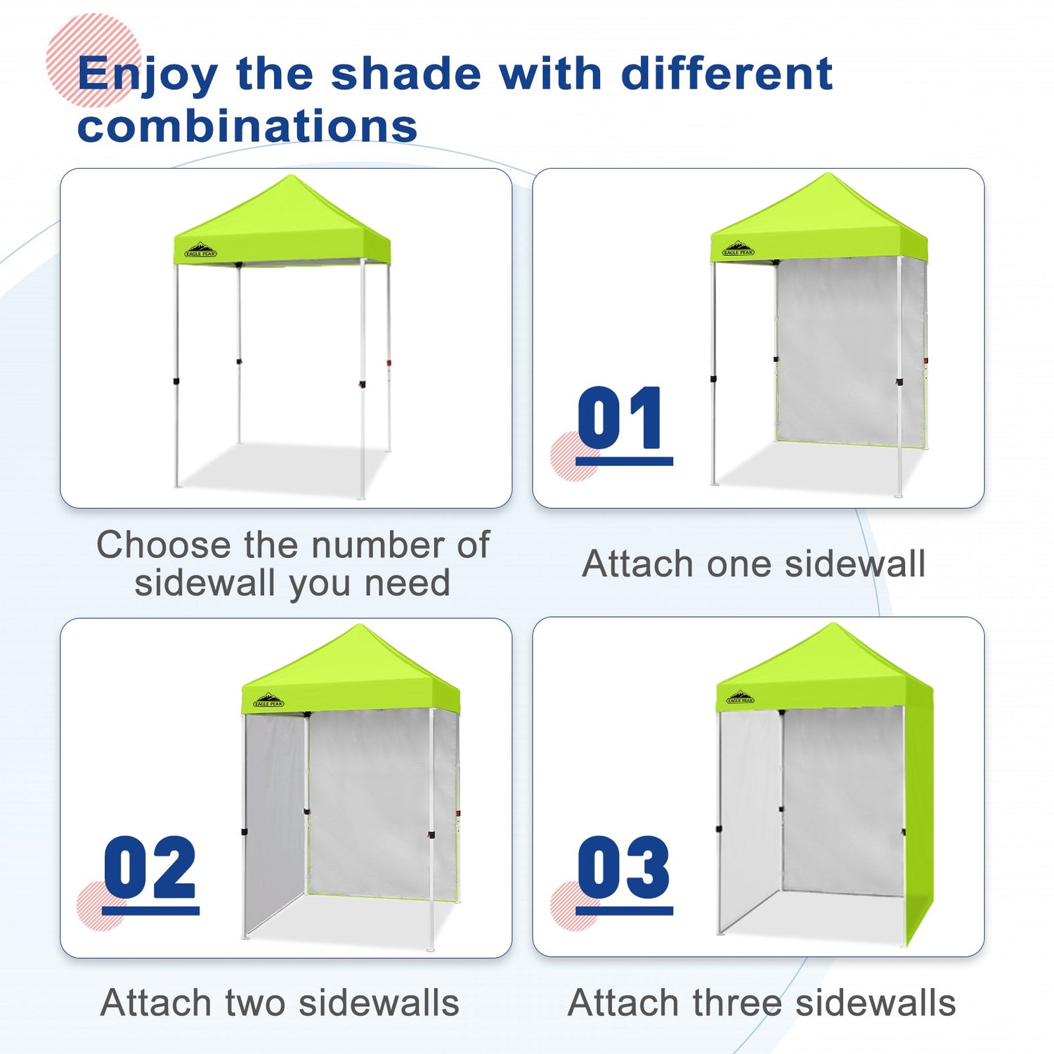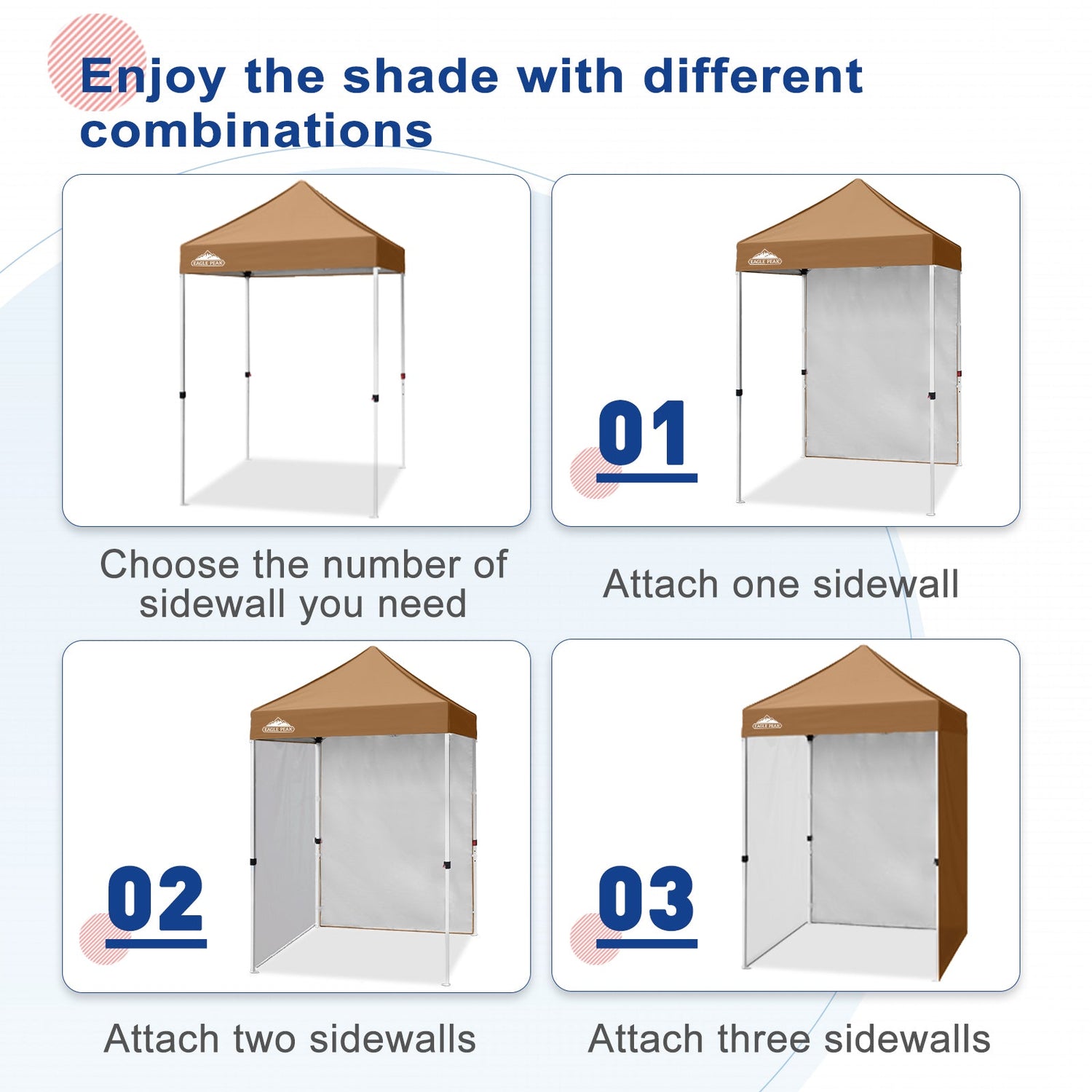 Eagle Peak Promise: Eagle Peak offers a 1-year limited after sale protection from the original date of purchase. If you have any other questions, please contact our professional service team. Please search E25 to find the Eagle Peak straight leg canopy 5x5 for this sidewall.