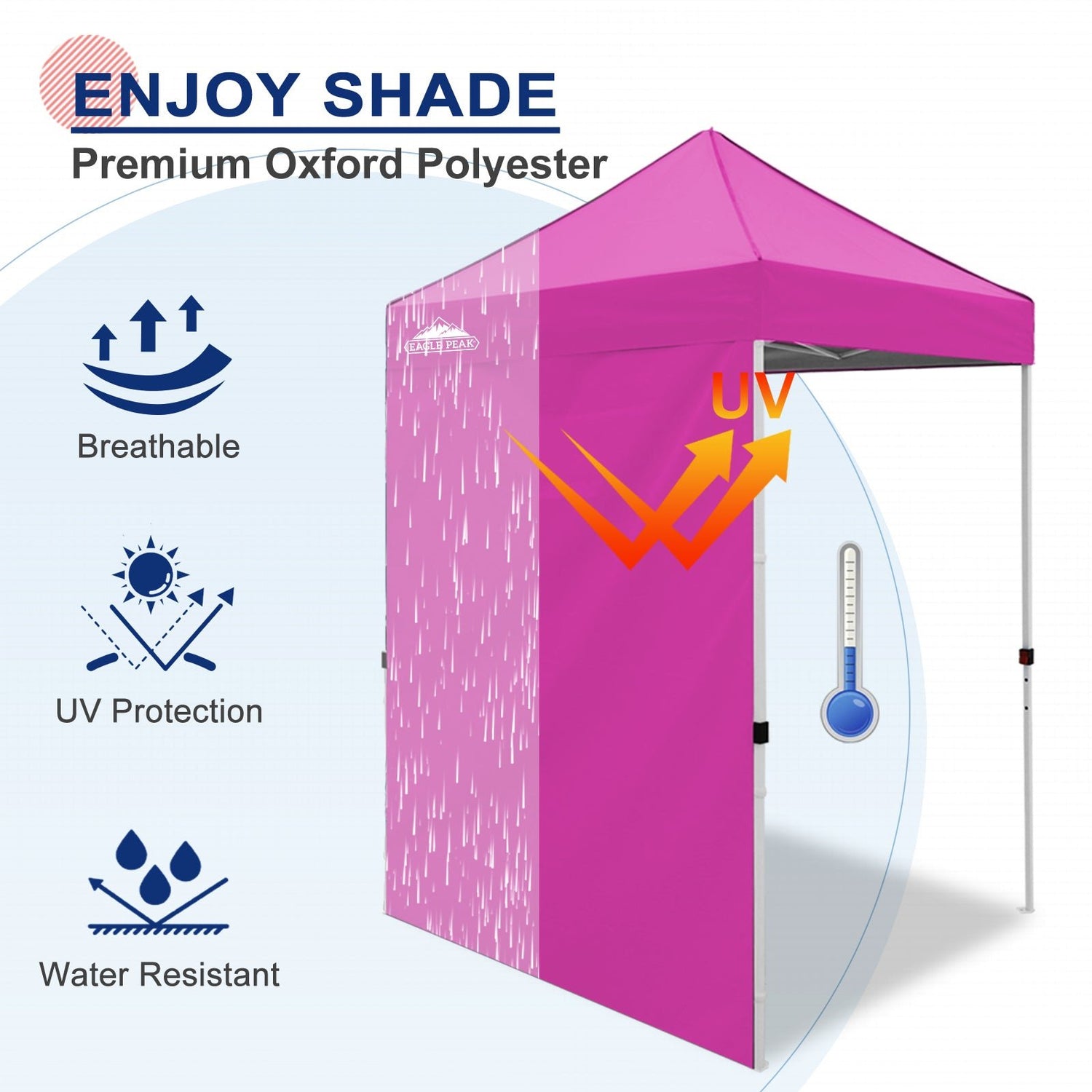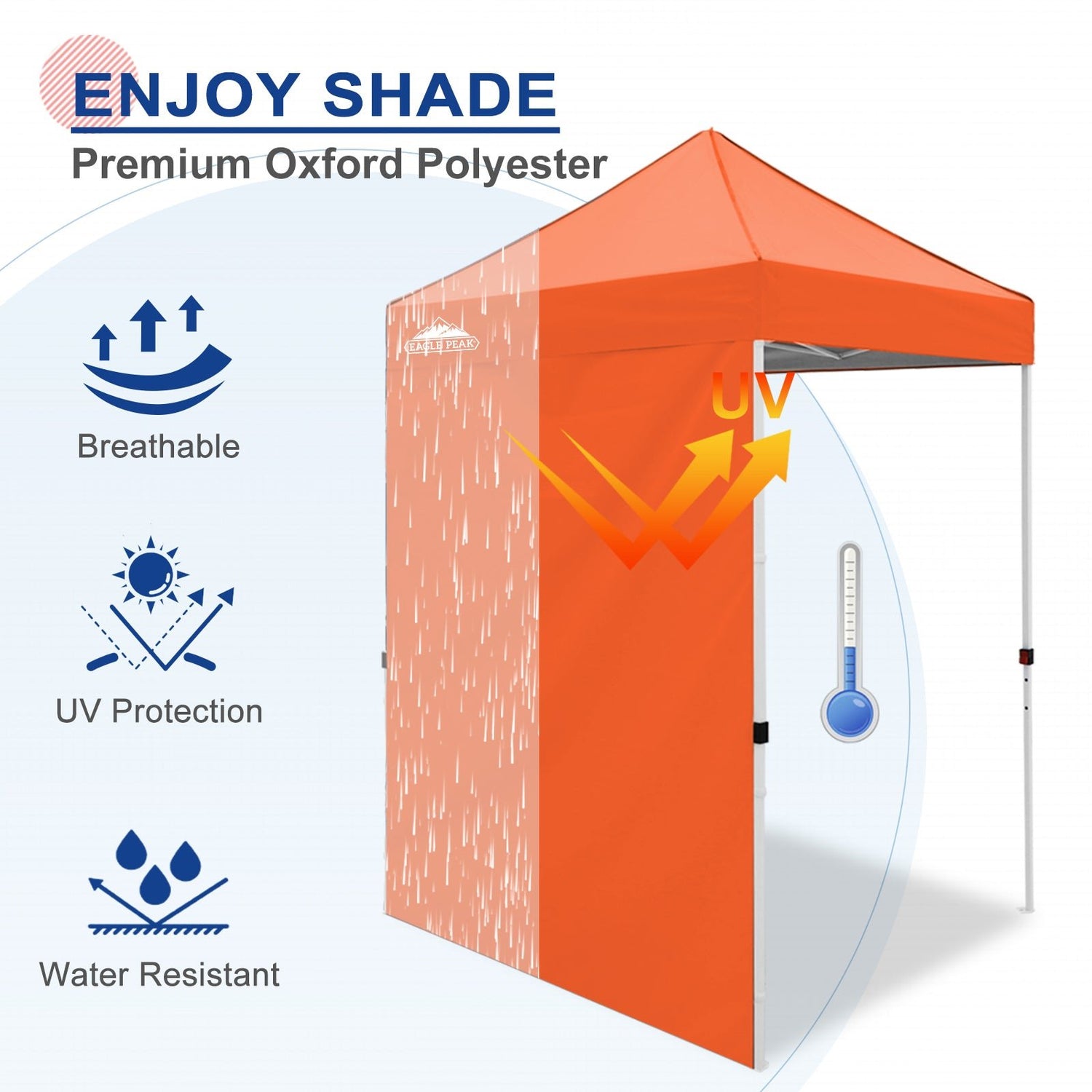 Durable Material: The sidewall is made of silver PU coating 150D Polyester, 100% water-proof, UV-resistant; helps block 99% of UV sun rays.