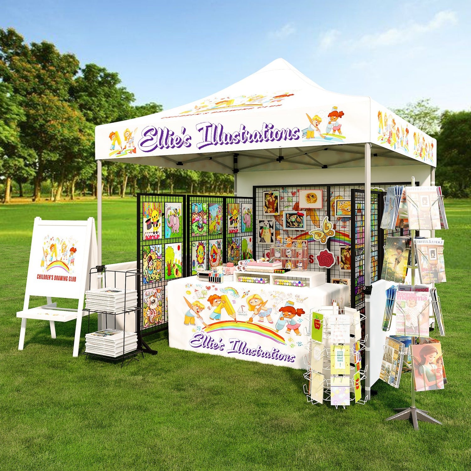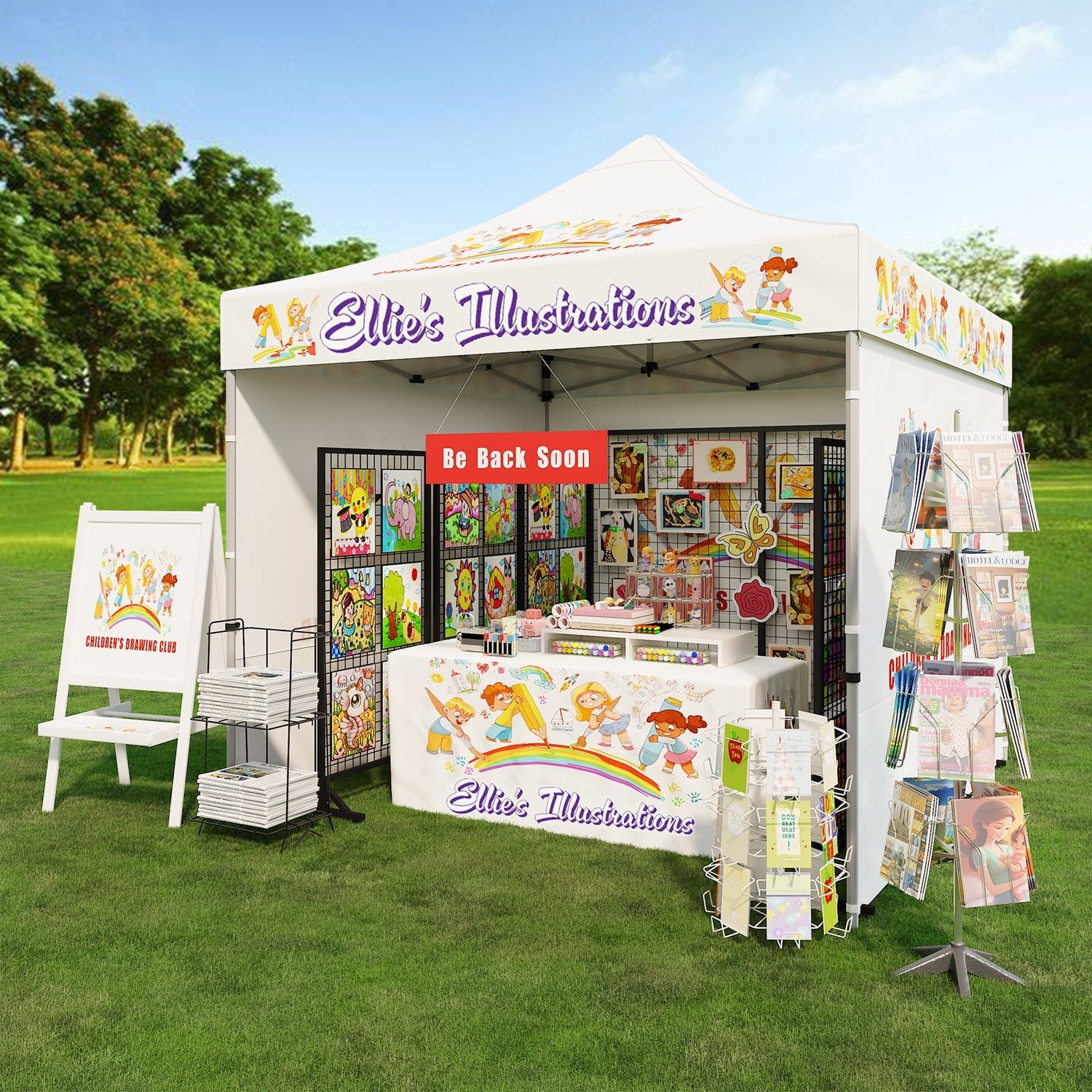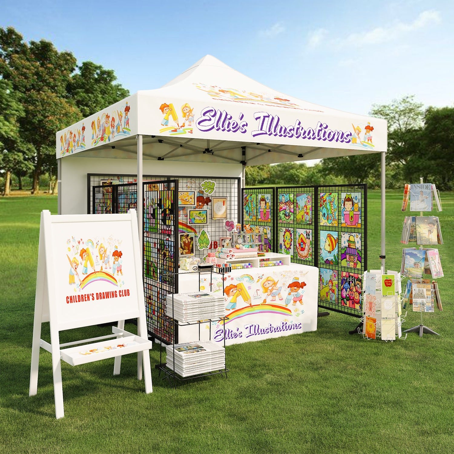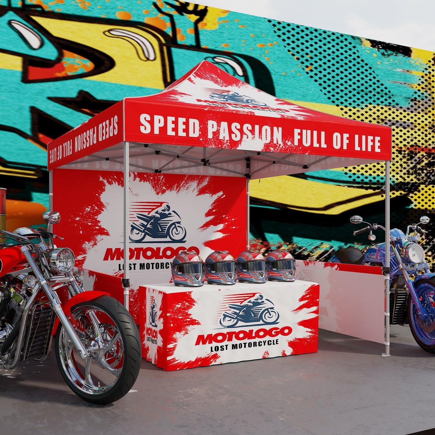 CUSTOM PRINTING: Your logo and design can be printed with 100% coverage on all outer surfaces of the canopy top, and wall panels. Complimentary products such as table covers, flags, and other accessories can also be ordered separately to promote your company and brand.