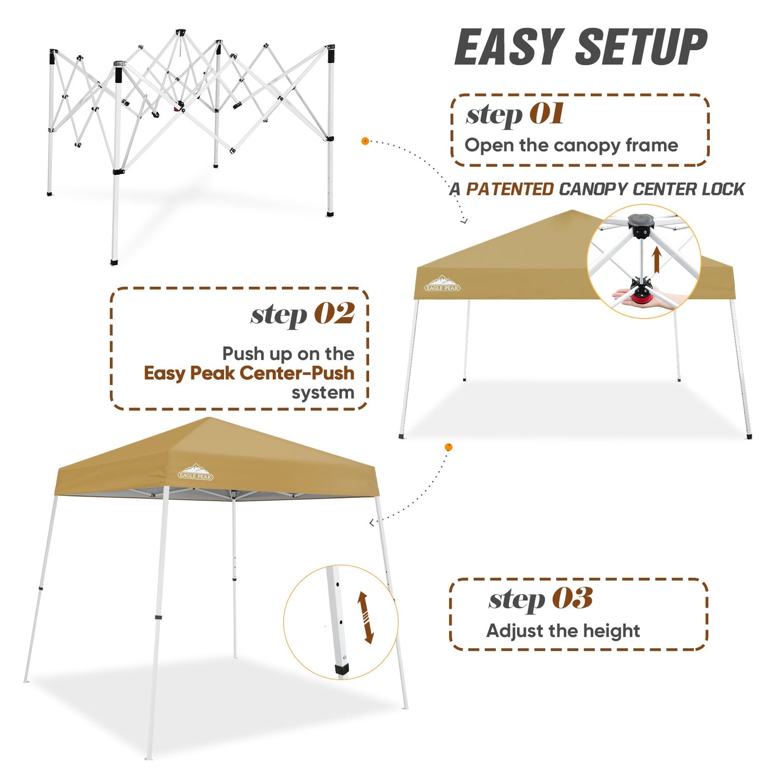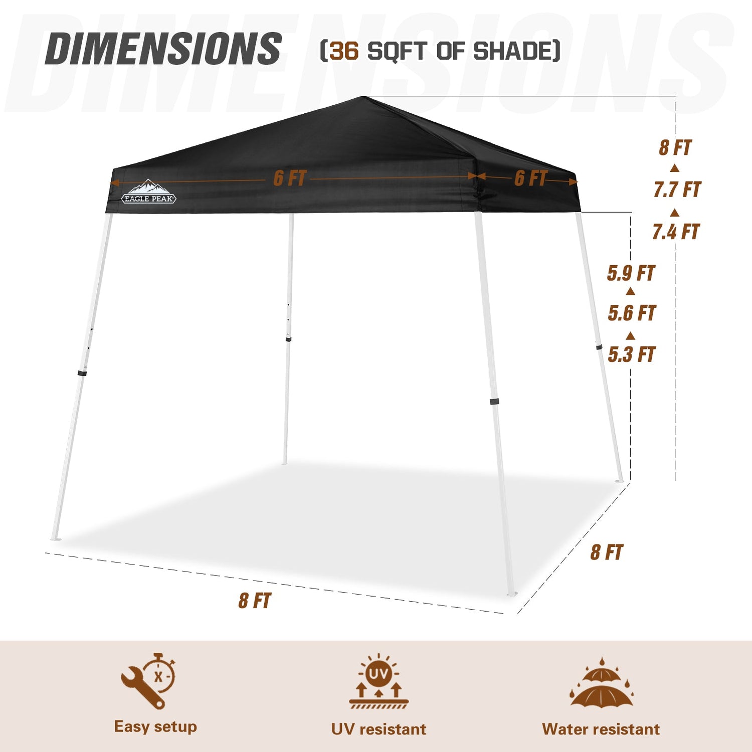 8x8 Slant Leg Pop-up Canopy Tent, Shelter 8x8 Base 6x6 Top