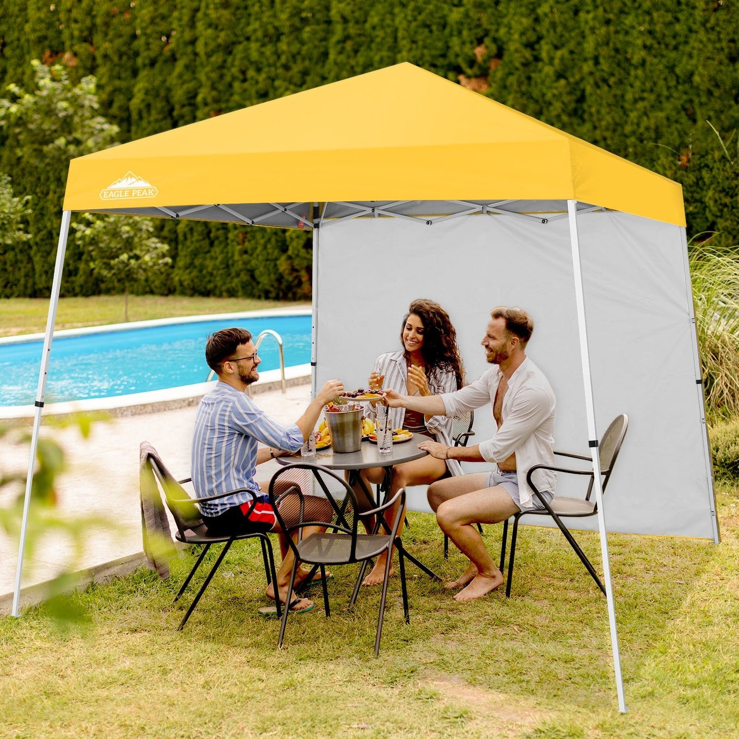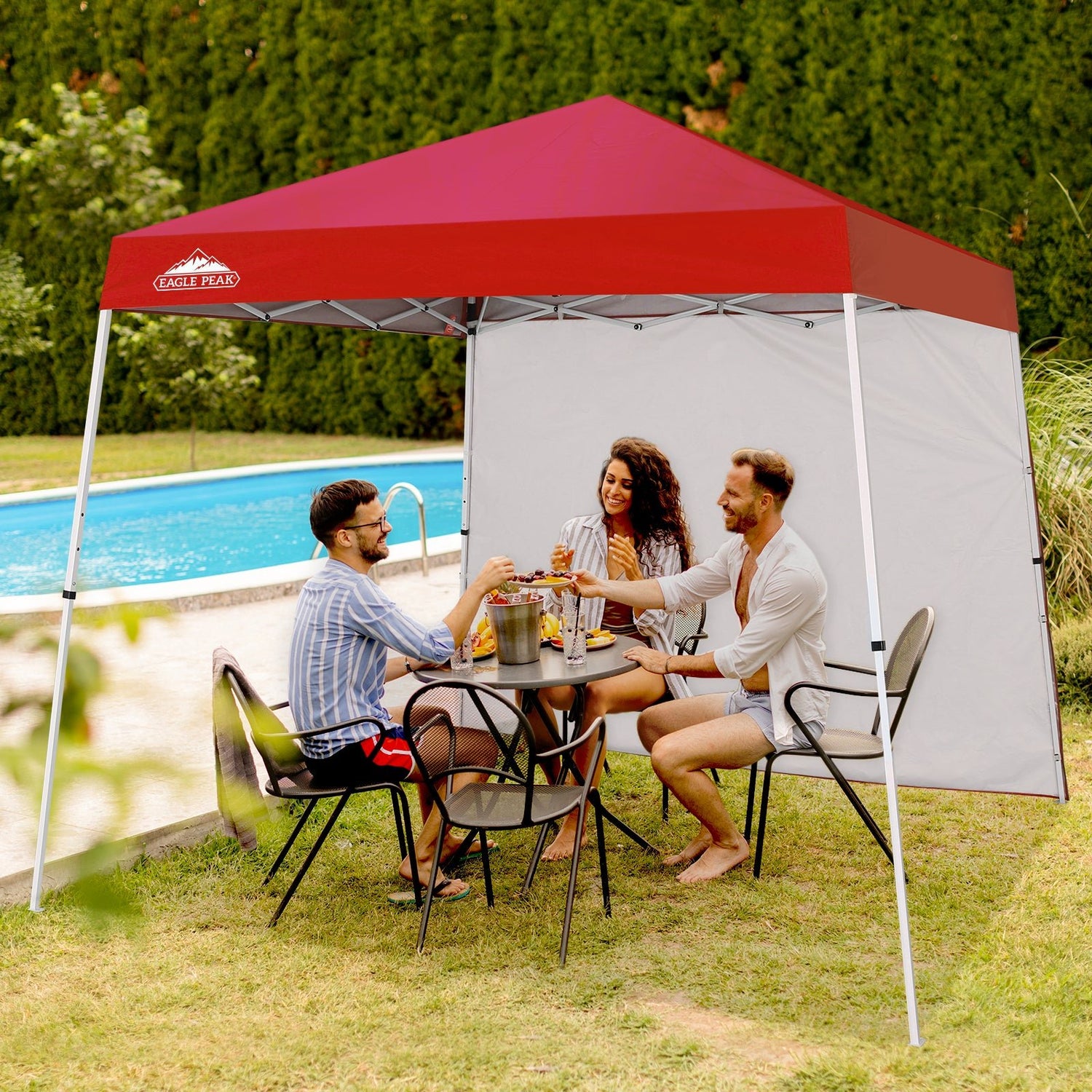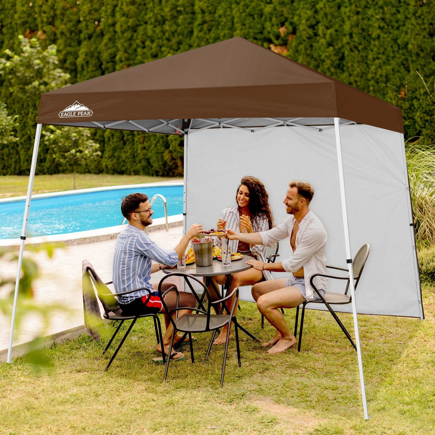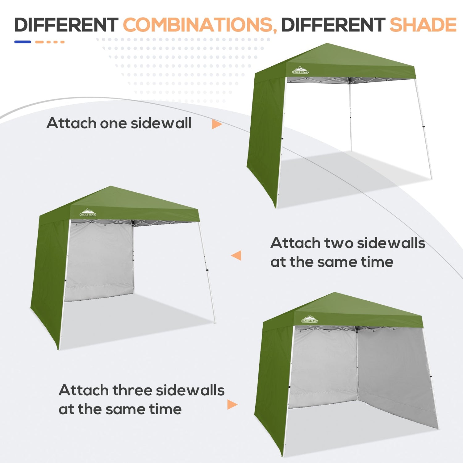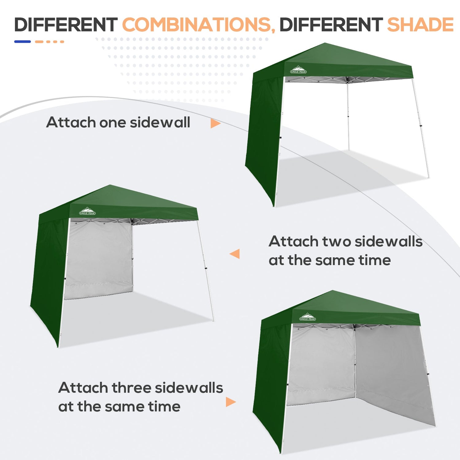 Fit For: This Eagle Peak sunwall measures 95'' top x 114'' bottom x 79'' H, fits for the EAGLE PEAK slant leg canopy 10x10. One sidewall is for one side of the 10x10 instant pop up canopy.
