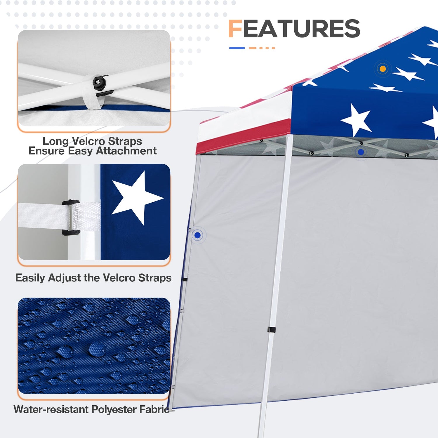 Easy Setup: Easily secure the sunwall to the canopy eaves trusses using the Velcro tab straps on the top edge of the wall, and 8 adjustable Velcro tab straps along its sides to secure around the legs of a canopy frame.