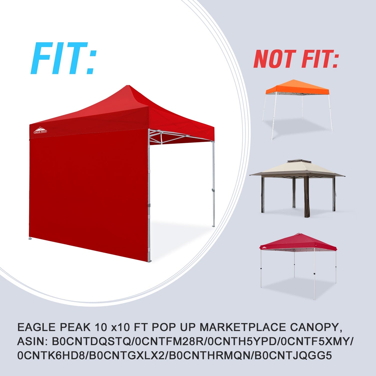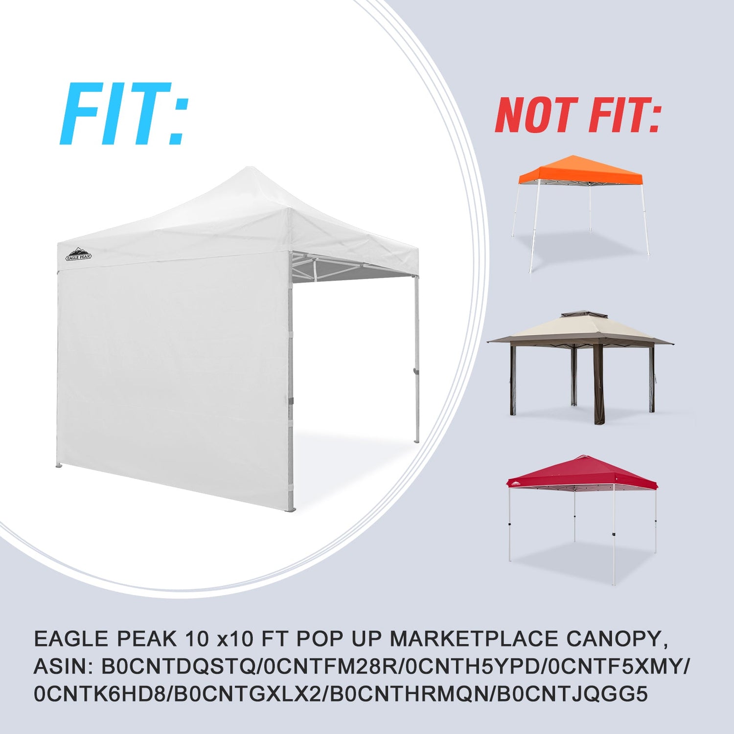 - FIT FOR: This EAGLE PEAK sunwall measures 118'' L x 85'' H, only fits for the EAGLE PEAK heavy-duty commercial canopy 10x10 ft (B0CNTF5XMY). One sidewall is for one side of the 10x10 pop up canopy. You can buy 4 packs for full enclosure.